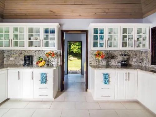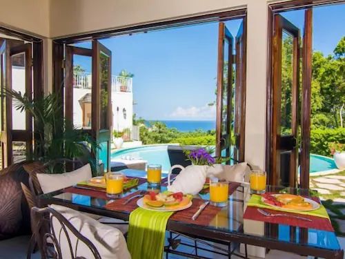 The view from the pool is spectacular as your vision passes over lush vegetation right to the glistening Caribbean Sea. The spacious living room offers premium cable television and WiFi internet, lots of seating for all the guests to hang out. Located very close to Montego Bay, the villa is only a few minutes drive away from some very spectacular beaches.