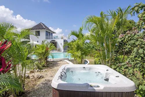 Half Hill consists of a main villa and cottage, has 4 bedrooms, 2 living rooms and accommodates up to 16 guests. There is an infinity edge pool, hot tub, Sonos sound system and complimentary Rose Hall Beach Club access.